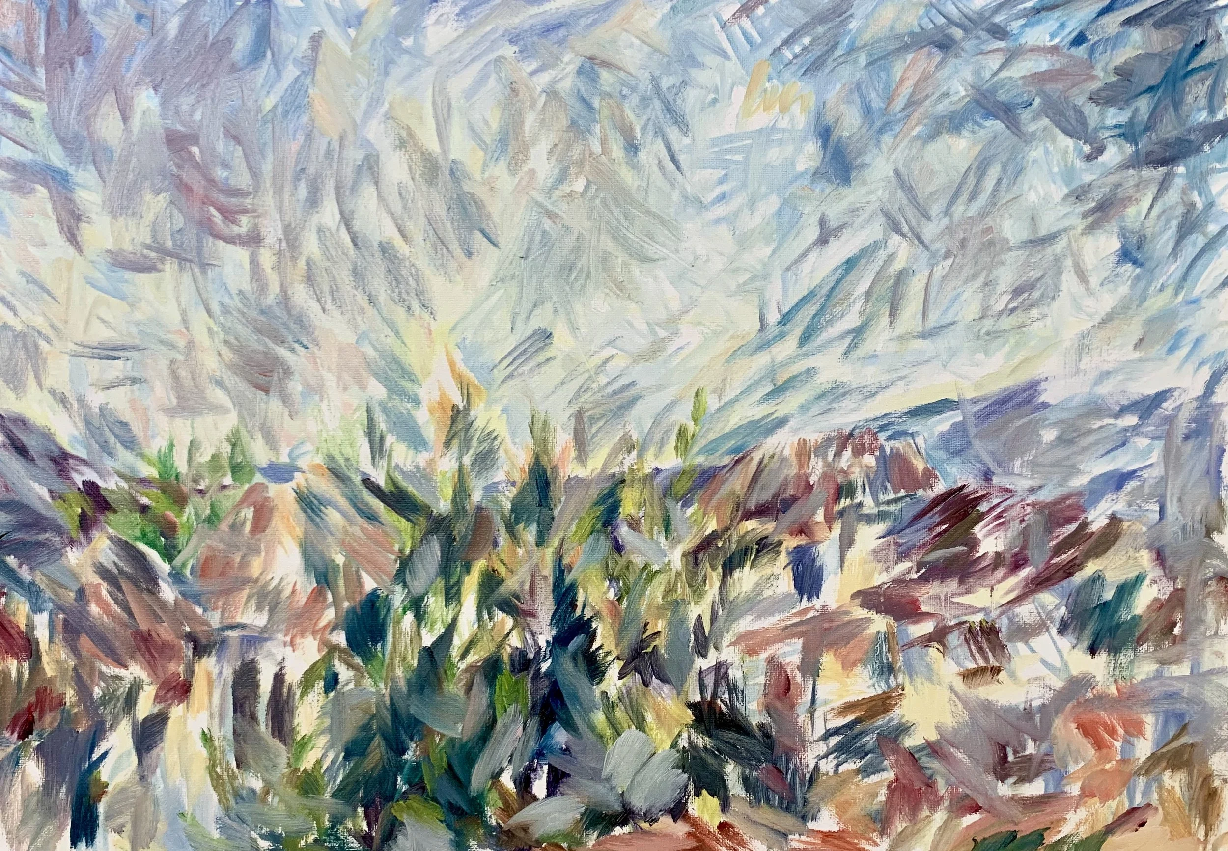 My creative process relies on a search for truth in the world—a truth that, over time and through continual practice of creating art, stems from an experience of what I see. I rely on nature and the dynamic quality of light and movement to guide my pursuit of creating a unified whole on the canvas, where color relationships communicate a harmony. Through rapid brush strokes, I attempt to express a quality genuine to my relationship with my subject matter. In this way, I work from the senses rather than intellect to cultivate a clear, distinct artistic vision.